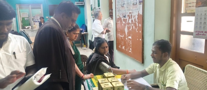 திருச்சி மாவட்டத்தில் வழக்கறிஞர்கள் மற்றும் நீதிமன்ற ஊழியர்களின் உடல்நலக் கவனத்தை மேம்படுத்தும் நோக்கில், பொது நலன் சார்ந்த சிறப்பு சுகாதார முகாம் வெற்றிகரமாக நடைபெற்றது. திருச்சி குற்றவியல் வழக்கறிஞர் சங்க செயலாளர் P. V. வெங்கட் அவர்களின் ஏற்பாட்டில், துளசி பார்மசி இணைந்து இந்த மாதாந்திர சுகாதார முகாமை நடத்தினர்.